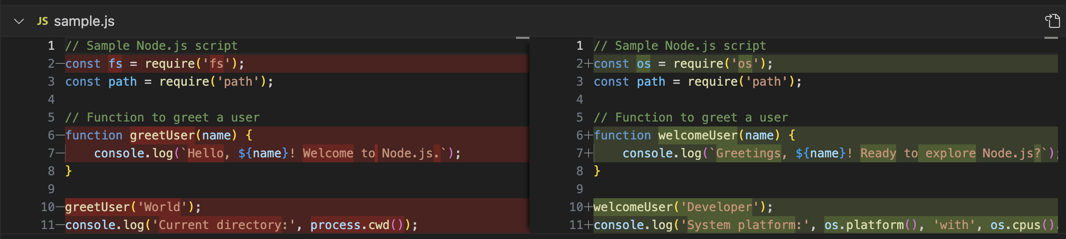 - 删除的行以红色高亮显示