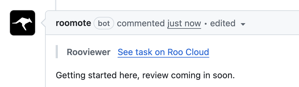 请注意,你无法通过名称调用特定的代理。当你使用 @Roomote 时,你是在提及 Roo Code GitHub App,它处理集成。然后 app 会根据上下文智能地调用适当的代理。